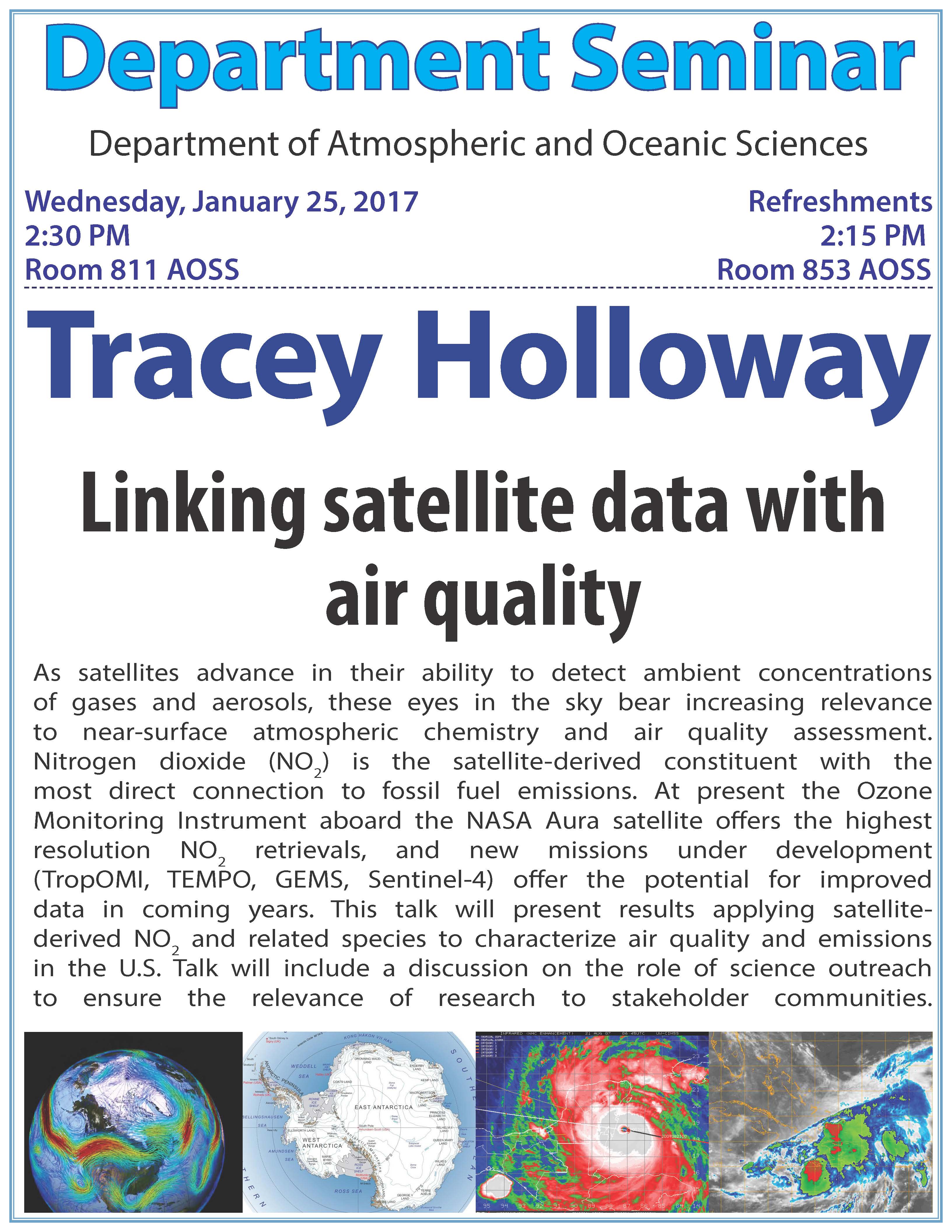 Speaker:Tracey Holloway, Department of Atmospheric and Oceanic Sciences, University of Wisconsin-Madison